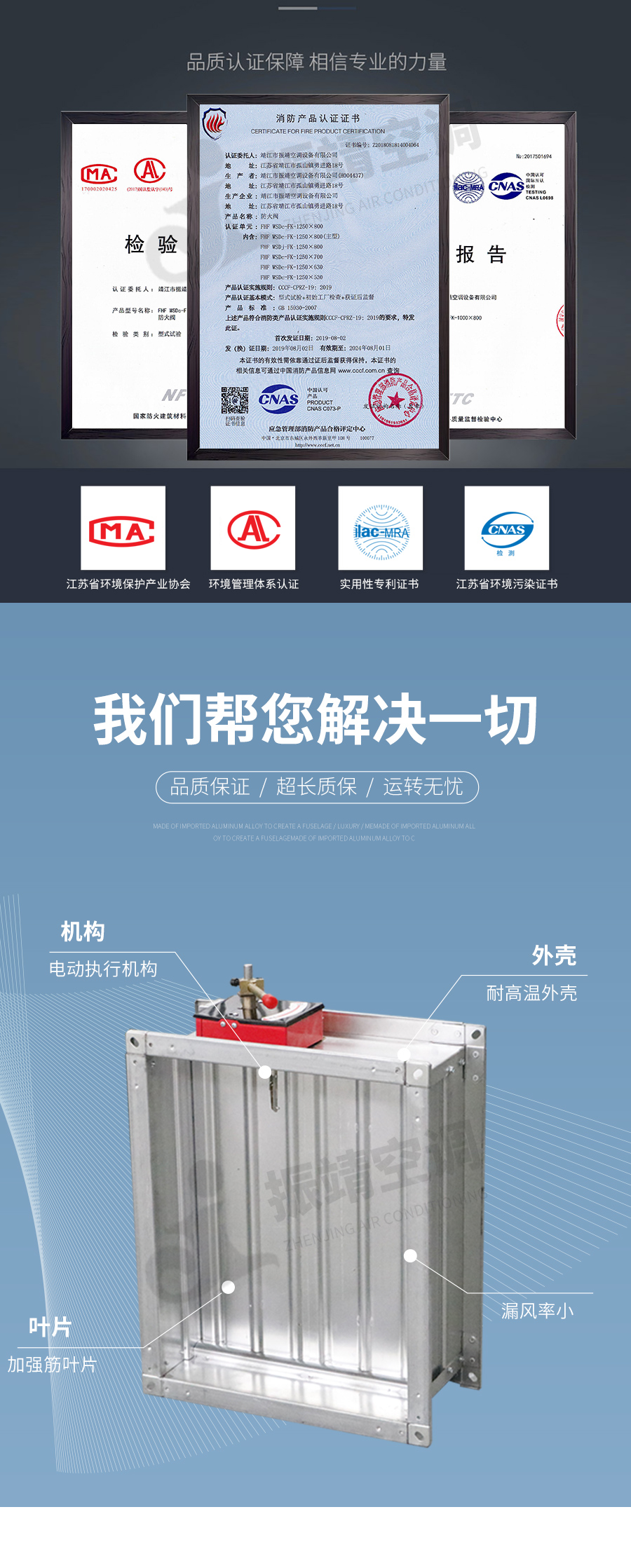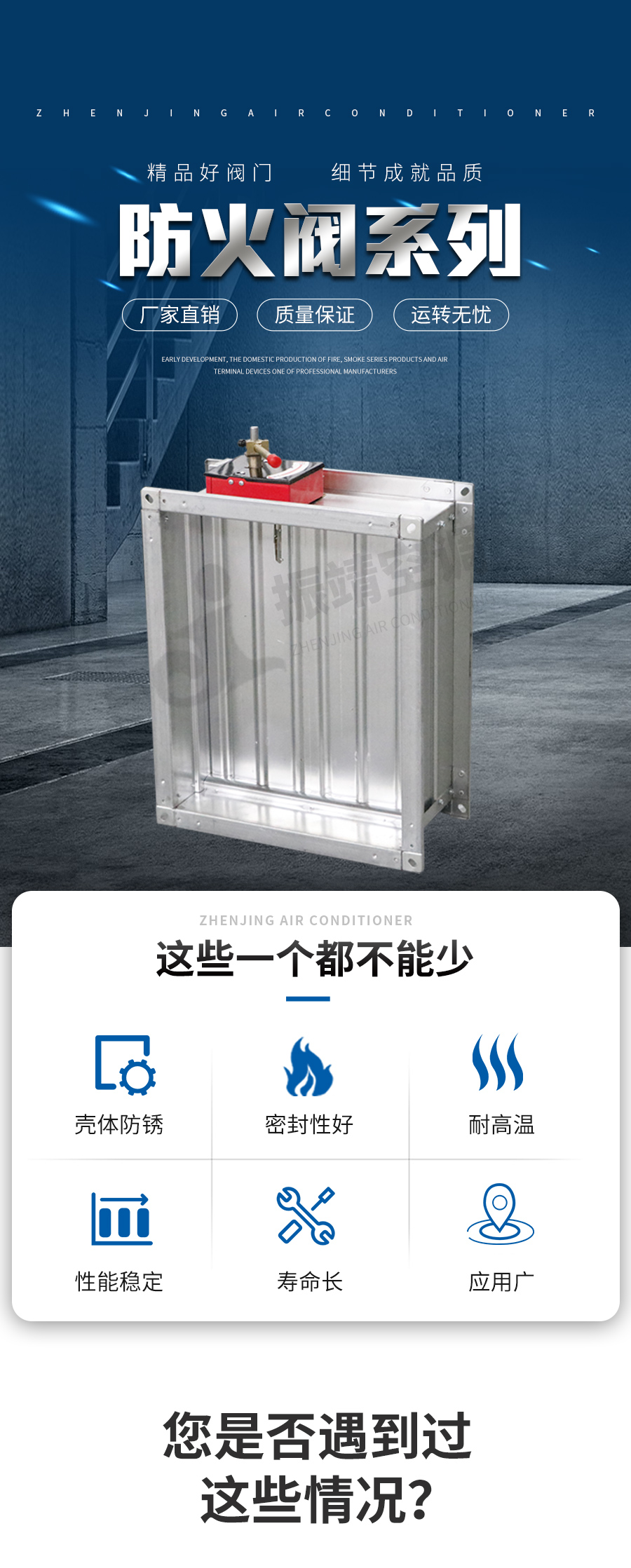 靖江市振靖空調設備有限公司是較早研制、生產的全自動防火閥廠家、定風量閥廠家、柜式離心風機廠家。