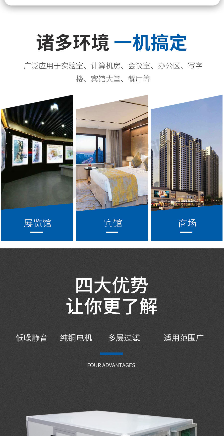 新風換氣機組是根據在密閉的室內一側送風另一側引風,則在室內會形成“新風流動場”的原理進行設計研制的。它依靠機械送風、引風,強迫在系統內形成新風流動場。是一種時刻保持室內空氣潔凈清新的新型環保電器。這種獨立的室內空氣置換、凈化循環系統,能在排除室內的污染空氣的同時,輸入自然新鮮空氣,將輸入室內的新風先經過濾、殺菌、加熱、增氧等多項處理。